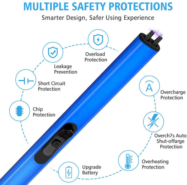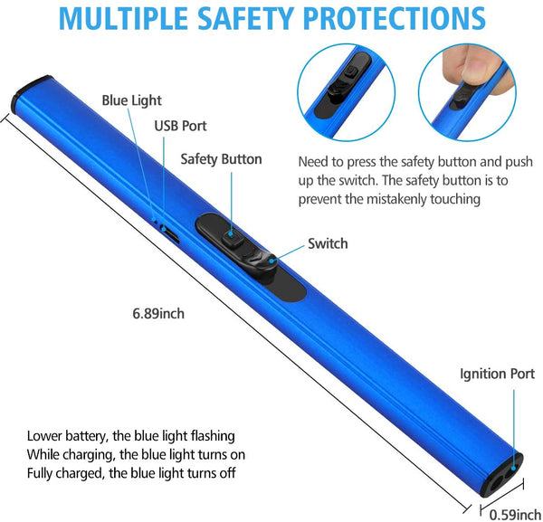 TREBLE SAFETY DESIGN - Our rechargeable candle lighter gives you treble protection, you need to press the safety button and push up the switch to ignite the lighter. For the safety of consumers, the igniting spark will auto stop beyond 7 seconds per igniting. Restart the switch, the igniting spark will be re-ignited. Please press the safety button and push up the switch gently while using it.