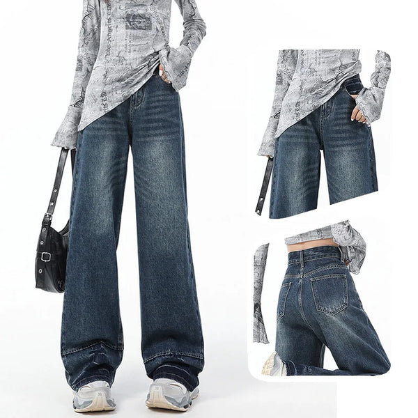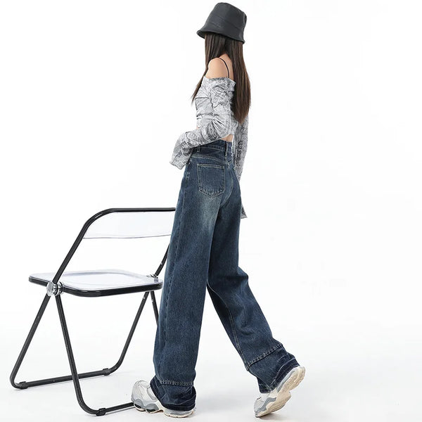 Casual High Waist Straight Wide Leg Jeans for Women Retro Loose Denim Pants New Fashion Trousers Womens Bottoms